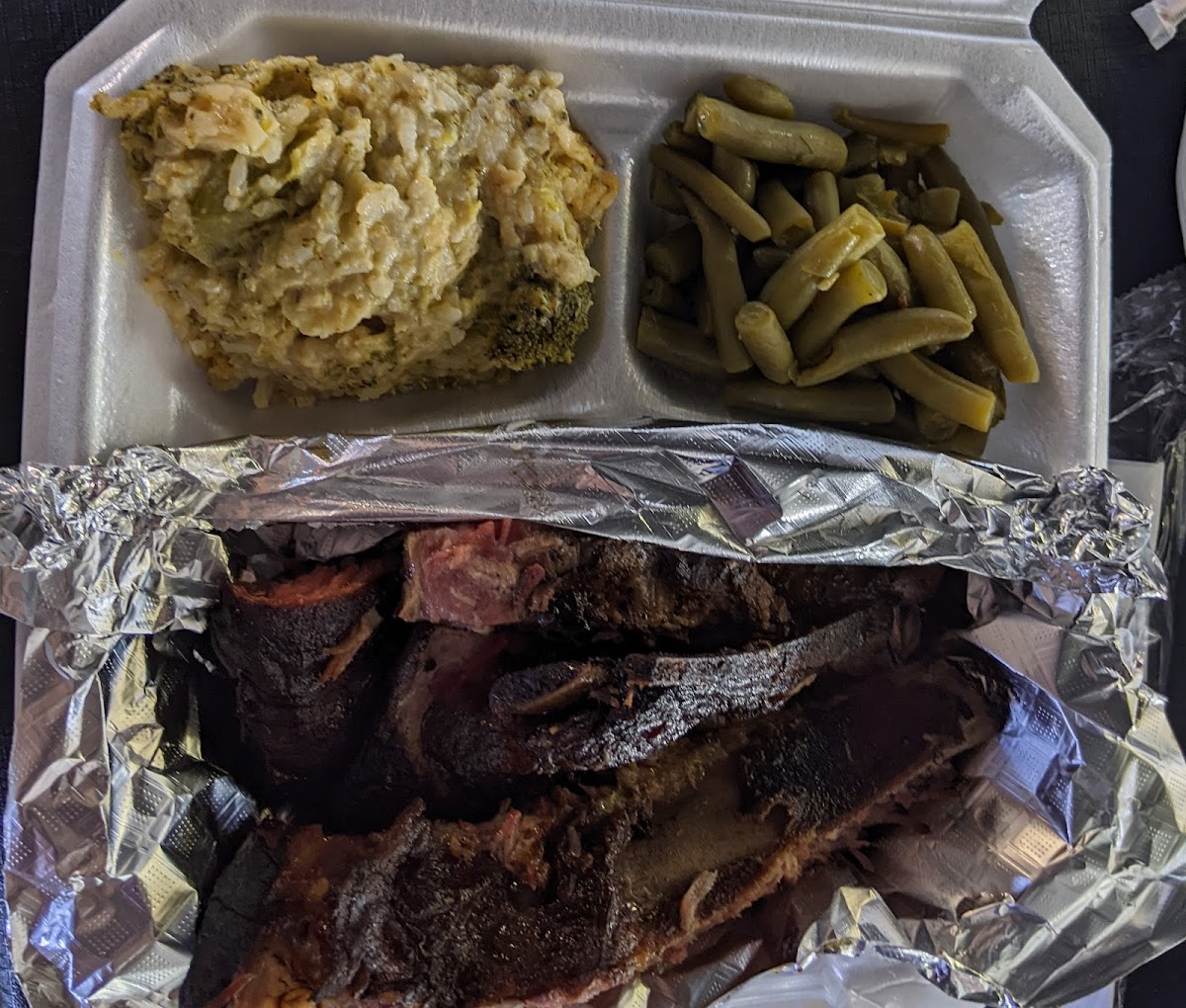 Ribs w Broccoli Cheese Casserole and Green Beans
